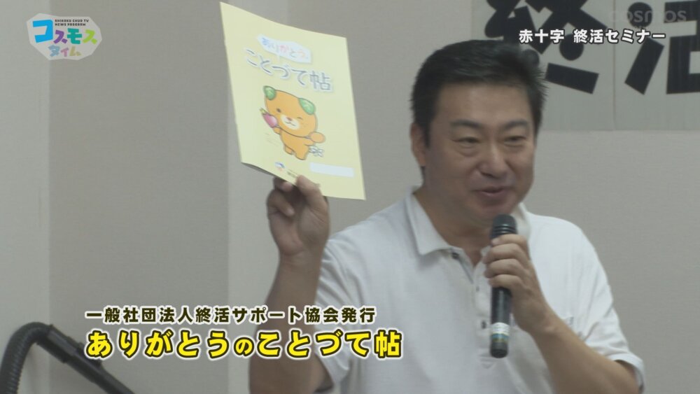 最新番組情報できたて!番組内容等ご確認ください! 赤十字 終活セミナー 10/1(日)9:00~ イベントノーカット番組 8月29日、上分公民館で「赤十字 終活セミナー」が開催されました。 人生の締めくくりを自身で準備する「終活」今回のセミナーは、老後の不安を少しでも解消し、安心して家族や大切な人に想いを残すための第一歩として、川之江赤十字奉仕団が初めて開いたものです。 場所:上分公民館