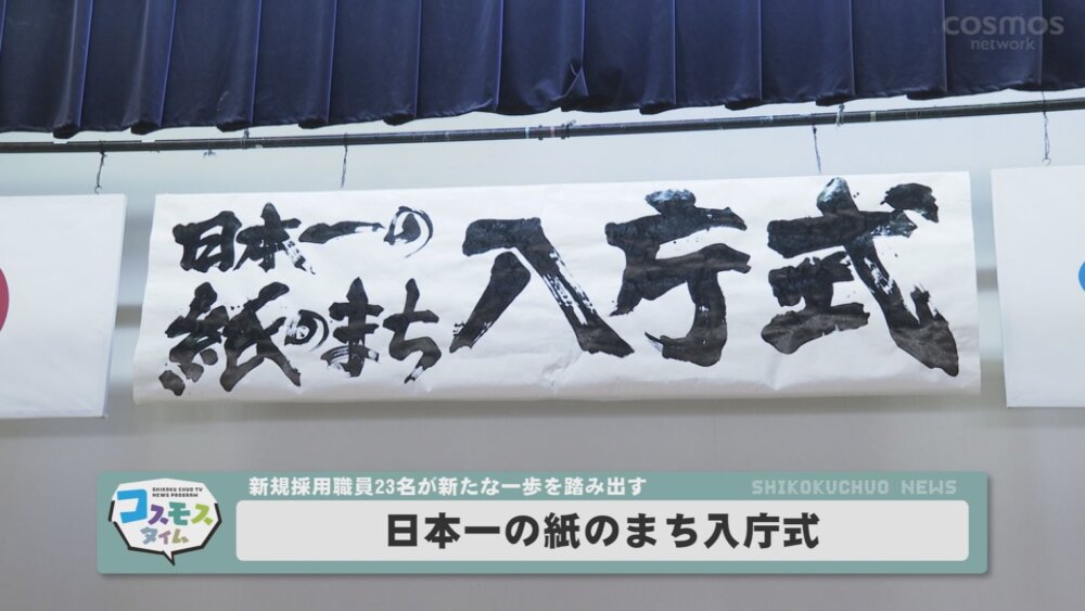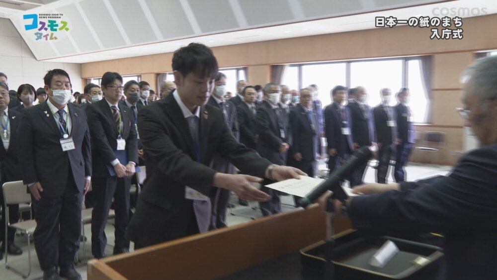最新番組情報できたて!番組内容等ご確認ください! 日本一の紙のまち入庁式 5月4日(日)9:00~初回放送 イベントノーカット番組 4月1日 市福祉会館で「日本一の紙のまち入庁式」が開かれました✨ 「日本一の紙のまち」であることを胸に刻んでもらおうと毎年4月に市が開いているもので新規採用の23人を含む、市職員およそ300人が出席しました🧑 場所:市福祉会館