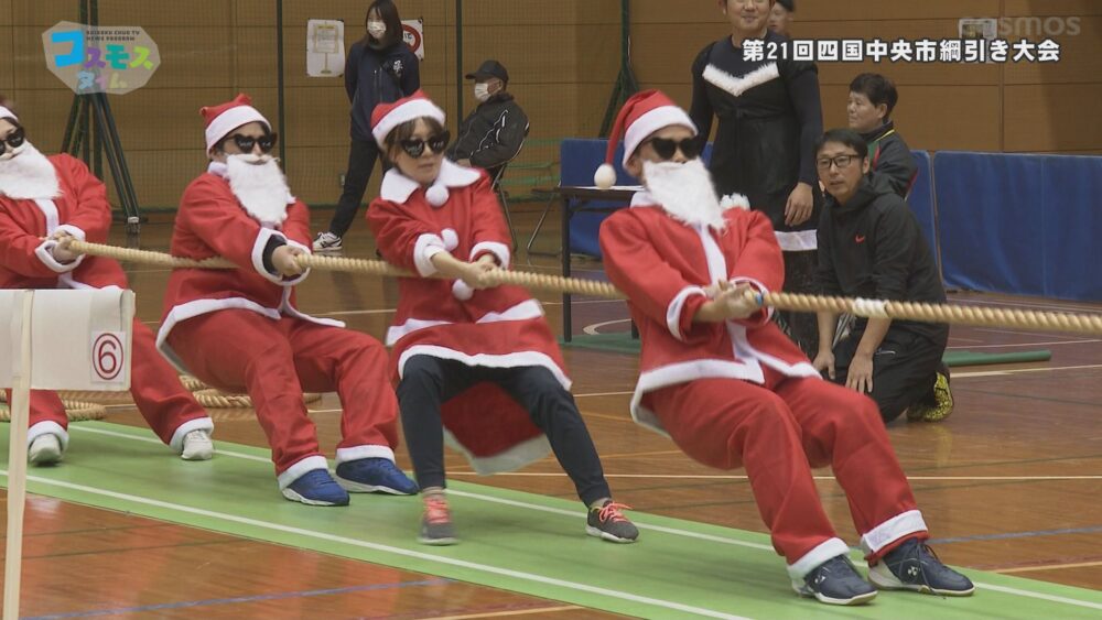 最新番組情報できたて!番組内容等ご確認ください! 第21回四国中央市綱引き大会 1月28日(水)9:30~ イベントノーカット番組 土居総合体育館で第21回四国中央市綱引き大会が開催されました✨ 土居地域を中心に盛んな綱引の魅力を知ってもらおうと毎年行われているもので、今年は市内外から6部門、36チーム271人が参加しました🙂 クリスマスに合わせてサンタクロースの衣装など仮装して、参加する人の姿が見られ会場は歓声にあふれていました。 場所:土居総合体育館