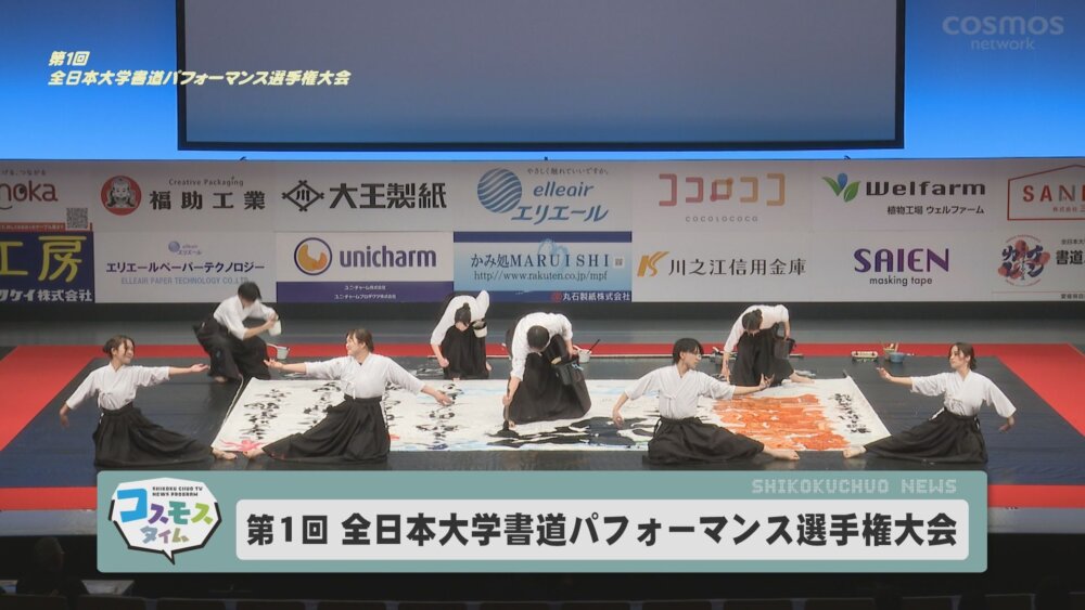 愛媛からは愛媛大学が出場し、自然の音にあわせて、篆書で雲や山などを描き、大学生らしい表現を目指したパフォーマンスを披露しました。