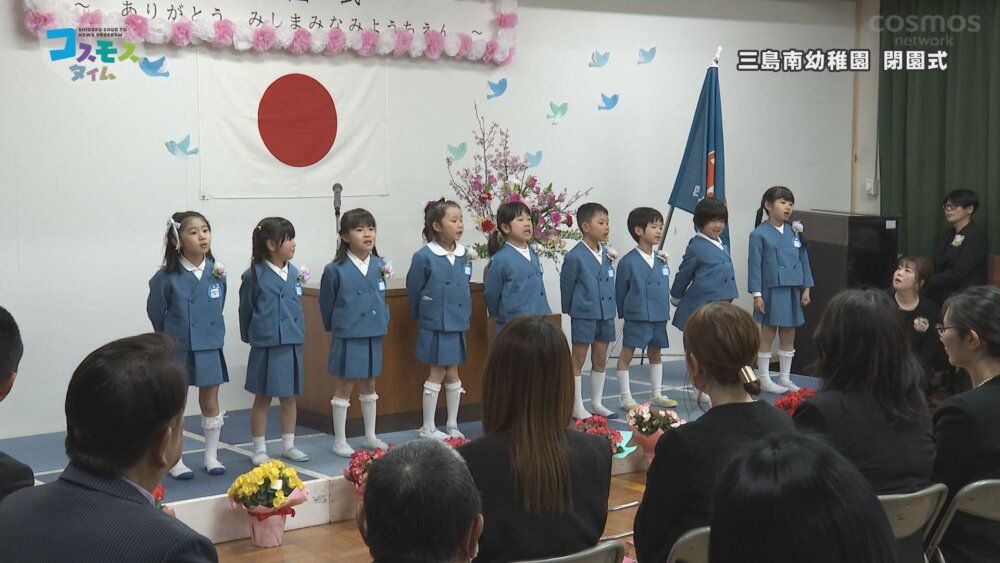 最新番組情報できたて!番組内容等ご確認ください! 三島南幼稚園 閉園式 4月20日(月)9:00~ イベントノーカット番組 三島南幼稚園で閉園式が行われ、長年親しまれてきた園がその歴史に幕を下ろしました。 閉園式は卒園式のあとに行われ、卒園児9人とその保護者、関係者などおよそ50人が出席しました。式では、歴代園児の成長を振り返るスライドショーや、園児による歌が披露され、会場は温かい雰囲気に包まれました。 最後に園庭で行われたバルーンリリースでは、色とりどりの風船が空へと放たれ、参加者は園との別れを惜しみながら、その門出を見送りました🎈 場所:三島南幼稚園