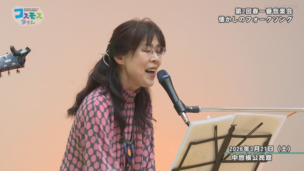 最新番組情報できたて!番組内容等ご確認ください! 第2回 春一番音楽会 前編:4月26日(日)22:00~ 後編:4/29(水)14:00~ イベントノーカット番組 中曽根公民館で第2回 春一番音楽会が行われました✨ 今回は市内外のグループや個人15組が、昭和や平成の歌謡曲を中心に歌や演奏を披露しました🎵 訪れた人は、昔懐かしのフォークソングから、令和歌謡曲まで魅力を再確認する特別なひとときとなったようです。 場所:中曽根公民館
