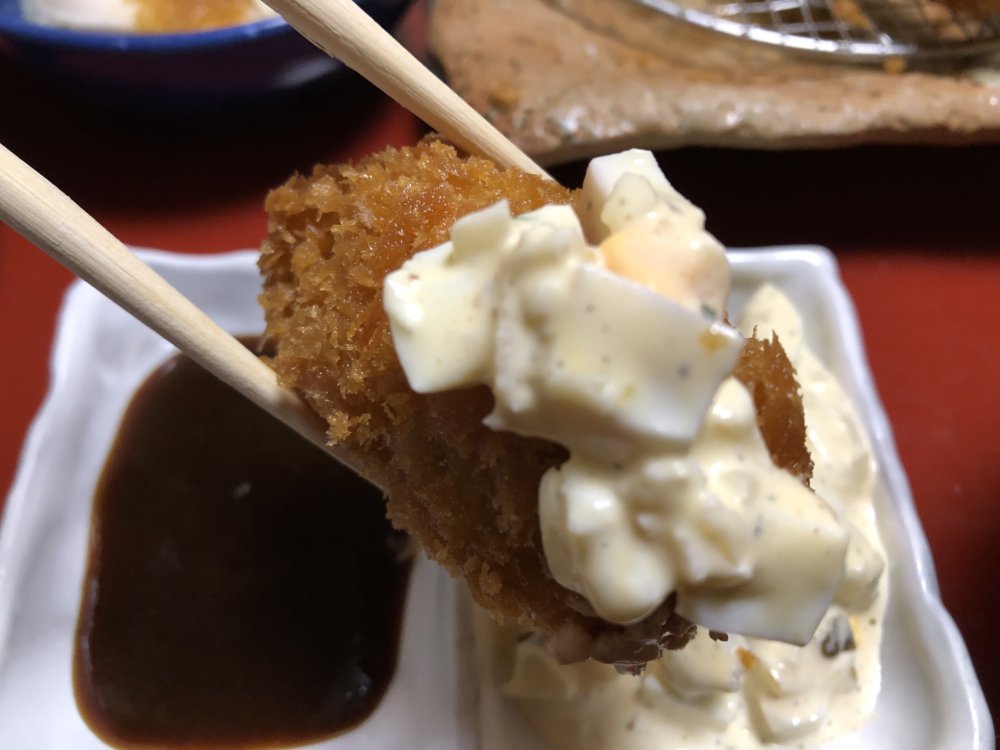 飲まない私は、牡蠣フライとお刺身のセットを注文。せっかくだから、どちらもいただきたい。
