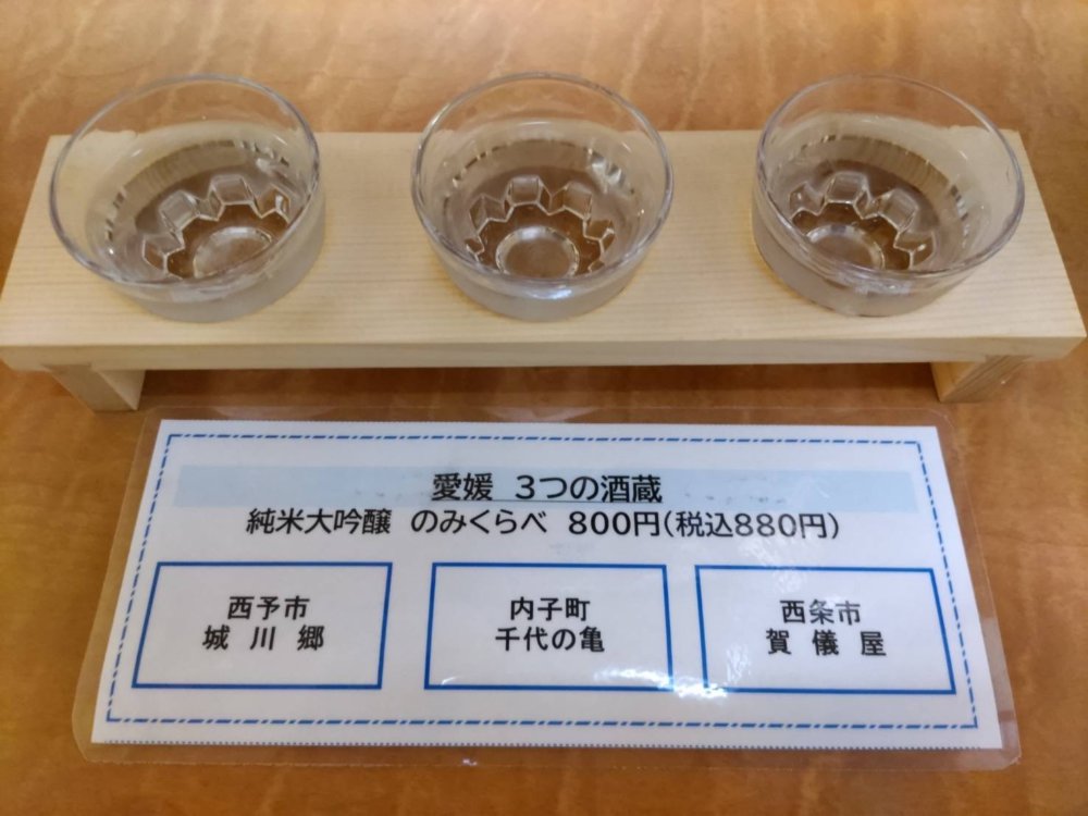 からの…落ち着いて呑む利き酒セット。大吟醸の飲み比べ、このお値段と量は素晴らしいと喜ぶ仲間。