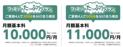 ★基本利用料1,000円(税抜)×4人+通信容量30GB・6,000円(税抜)=10,000円(税抜)