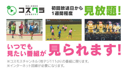 コスモスチャンネルで放送した過去1週間の番組が見放題!!