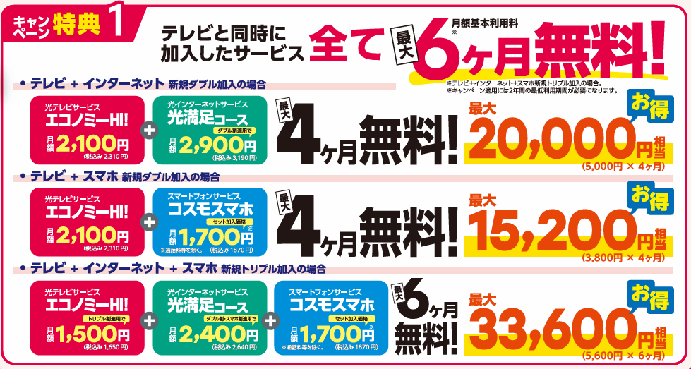 更に、テレビの新規契約と同時に、スマホやインターネットも合わせてご契約いただくと、